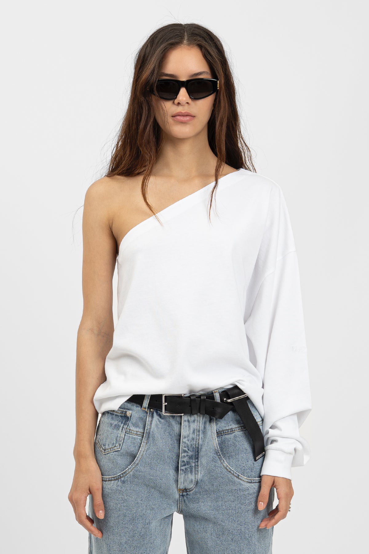 Ein Long Tee im One-Shoulder-Style – lässig und sexy zugleich. Ideal für Sommerlooks mit Haltung – nicht too much, aber trotzdem ein Hingucker.